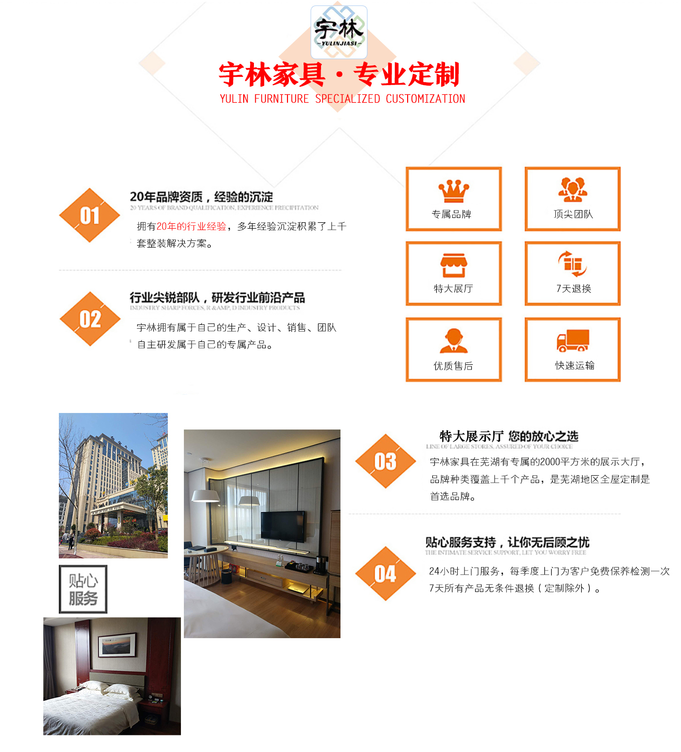 蕪湖宇林工貿(mào)有限公司創(chuàng)建于1996年,位于蕪湖高新技術(shù)開發(fā)區(qū)南區(qū),占地面積13000余平方米。是一個(gè)集研發(fā)、設(shè)計(jì)為一體的綜合性公司,公司主營(yíng)整體家居定制、酒店家具定制、娛樂(lè)場(chǎng)所配套家具以及軟體系列,團(tuán)隊(duì),銳意革新、進(jìn)去不息的理念,逐漸成為蕪湖家具行業(yè)的生產(chǎn)廠家,并在2006年注冊(cè)了“宇林”牌商標(biāo)。宇林品牌家具依現(xiàn)代與古典相結(jié)合的多種實(shí)木家具、實(shí)木貼皮家具。家具做工精細(xì),多用人工雕刻;其自然、典雅的風(fēng)格在很大程度上引導(dǎo)著人...